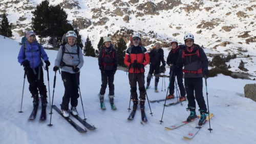 Après un bon pique-nique au soleil, il ne manquait plus qu’à redescendre pour de bon jusqu’à notre point de départ. Le retour vers le refuge de Saboredo a donné lieu à de belles descentes grâce à la fine couche de neige fraîche. On ne peut pas en dire de même pour la dernière partie de la descente car la neige était bien humide et bien bien lourde. Après quelques passages de « ski combat » entre rochers, branchages et cours d’eau, l’objectif de déchausser le plus tard possible a quand même été atteint.