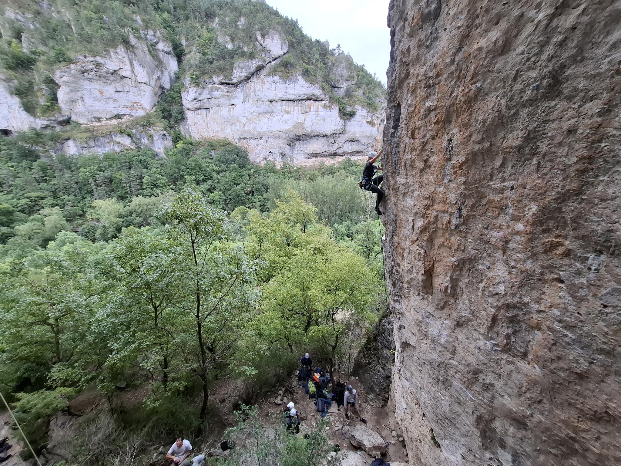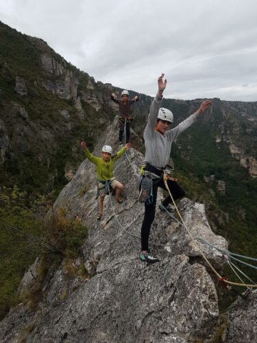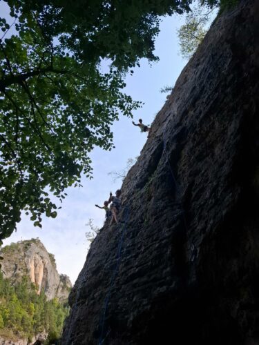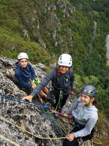 Après plusieurs années dans le Briançonnais, c’est parti pour les Gorges du Tarn cette fois, les 2 minibus bien remplis, emmenés par Laurent, Valentin et Lucas.
