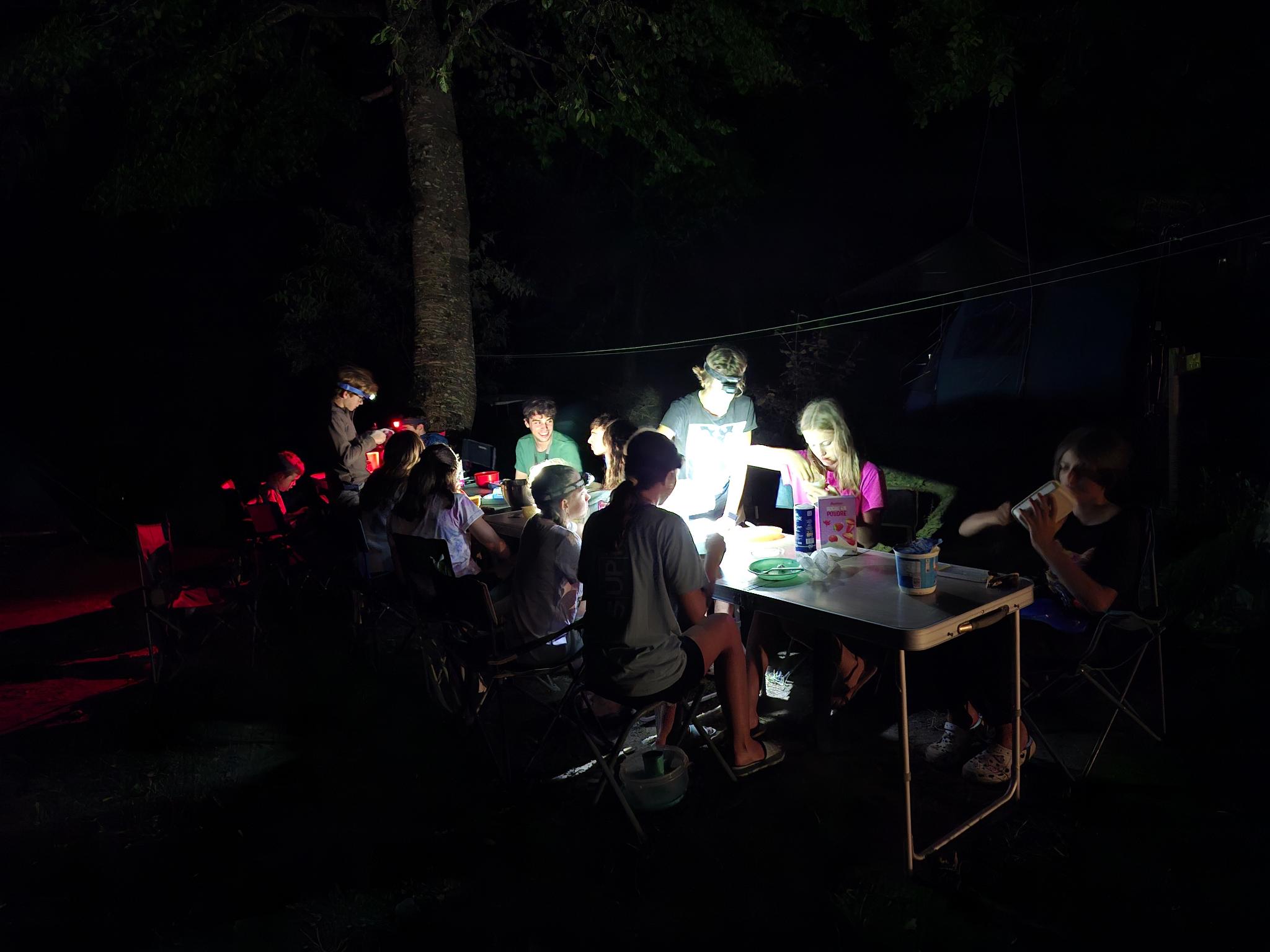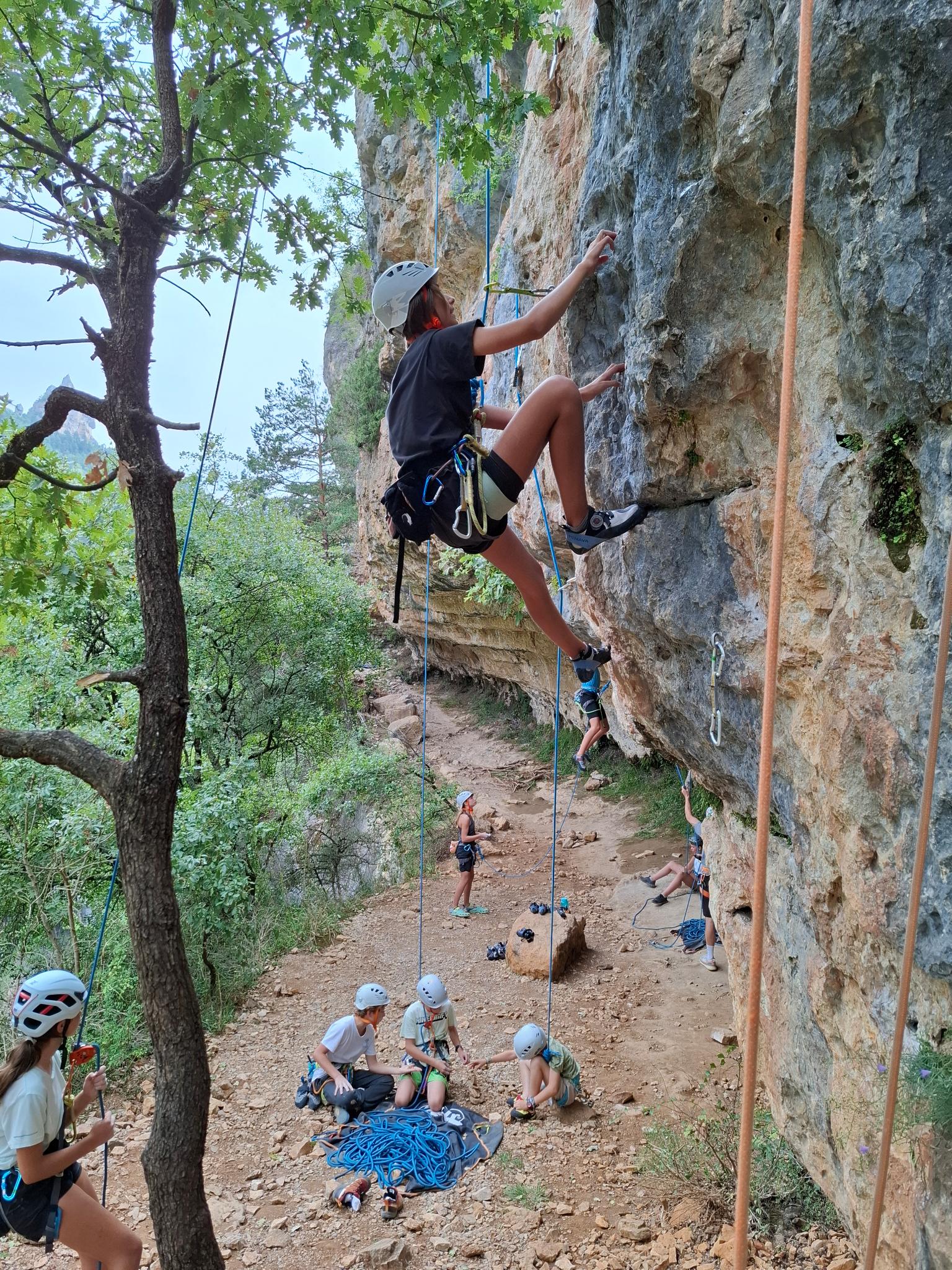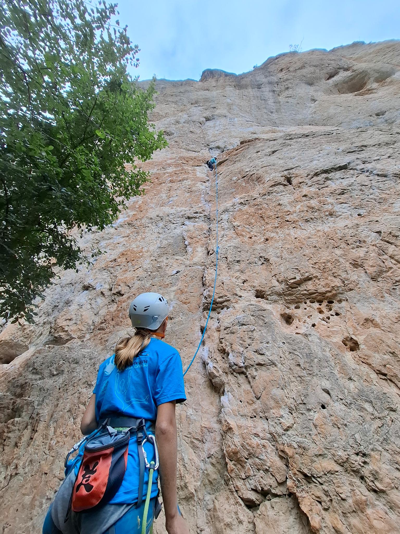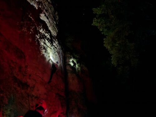 Des moments très forts du stage sont ressortis des discussions : une soirée nocturne à la frontale avec repas et grimpe jusqu’à plus de 23h, et une initiation grande voie par demi-groupe.