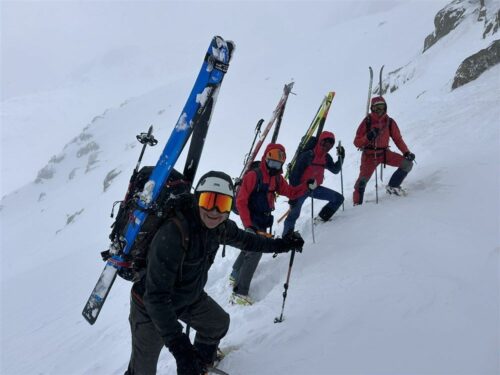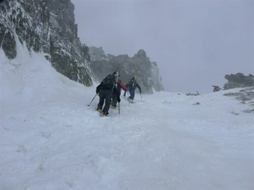 Planifié au départ la semaine du 23 mars, c’est en considérant les prévisions météo que, une semaine plus tôt, l’équipe du TAG a décidé de décaler son raid dans les Encantats d’une semaine. Mauvaise idée ! la semaine initialement prévue a eu une très belle météo et la suivante… une météo pour un raid rude et technique !