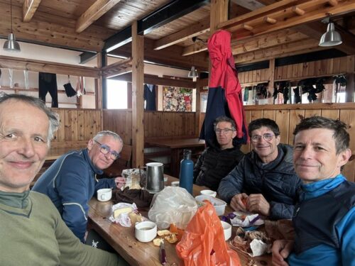 Mais vaillamment, elle s’est remise sur pieds et a rejoint le refuge sans encombre mais déjà sous le couvert des nuages et de la neige qui n’allaient pas nous quitter pendant les 30 prochaines heures !