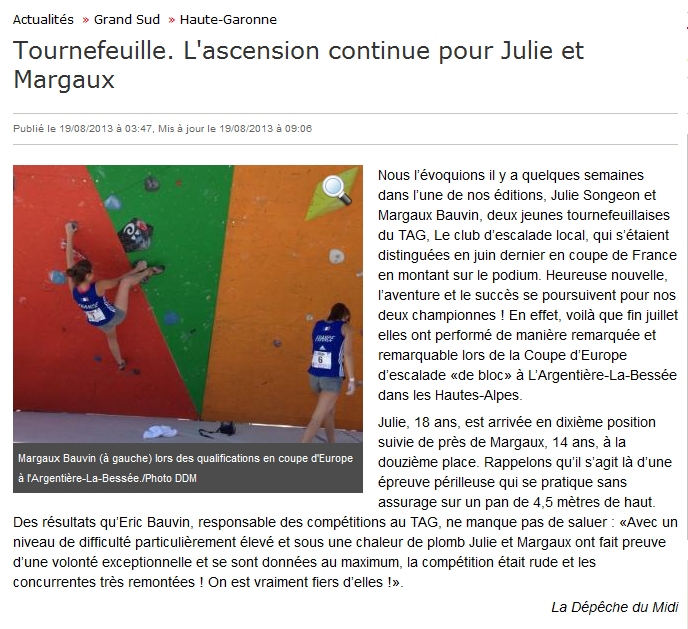 24/05/2010 – La Dépêche – Tournefeuille, le club d’escalade au sommet